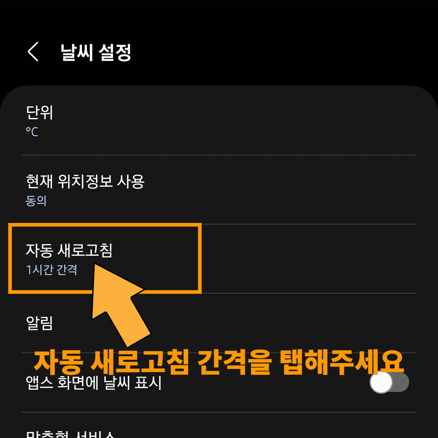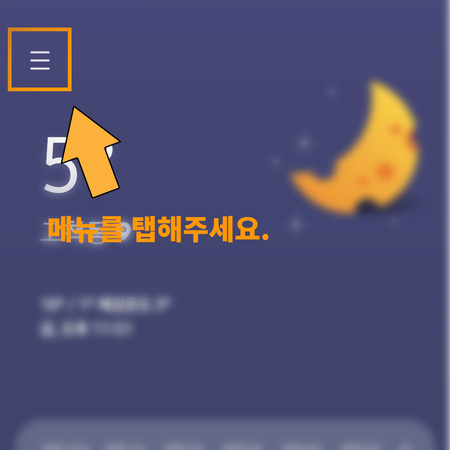1. 스마트폰의 바탕화면에 기본 날씨 위젯을 띄우고 계시죠? 그걸 탭 하고 날씨 상세페이지로 이동해주세요.
