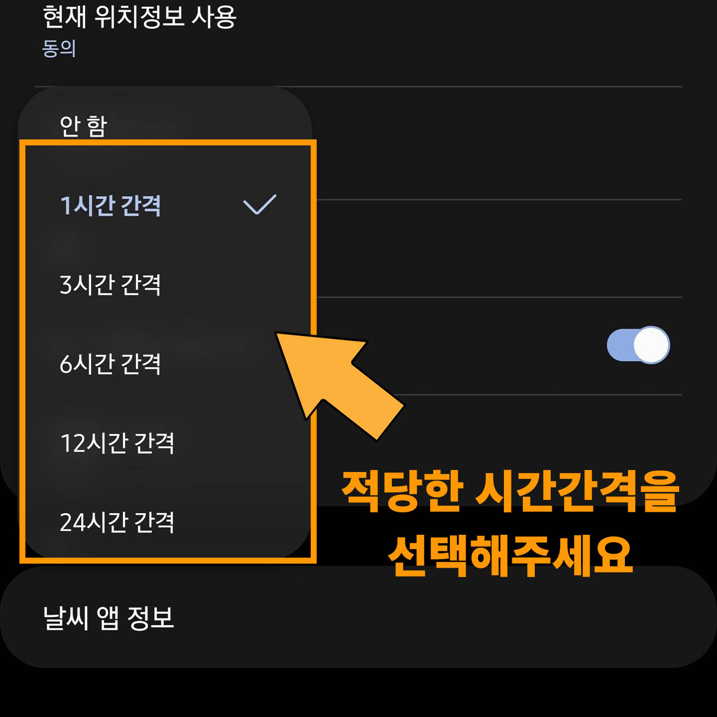 (기본 6시간 간격으로 되어 있다 보니 날씨정보 변화가 없는 것으로 착각을 하게 됩니다.)